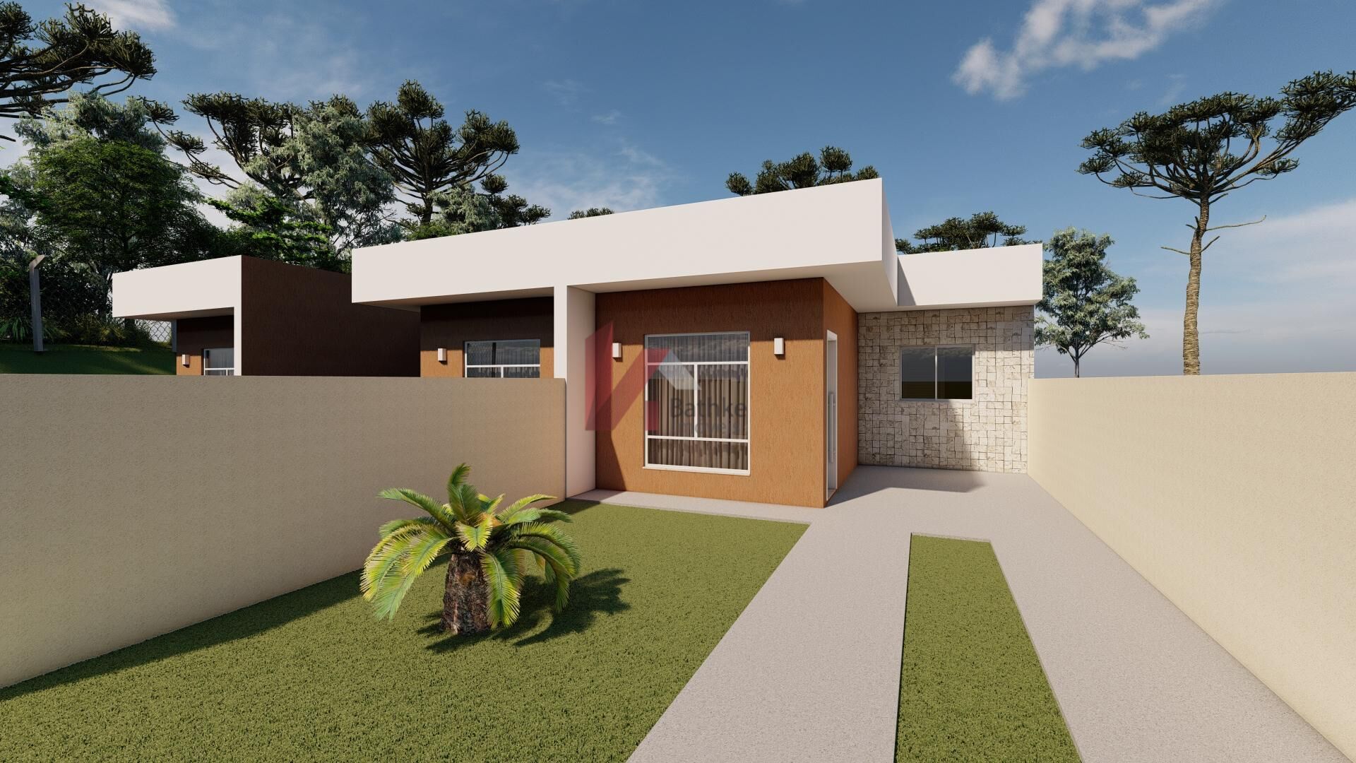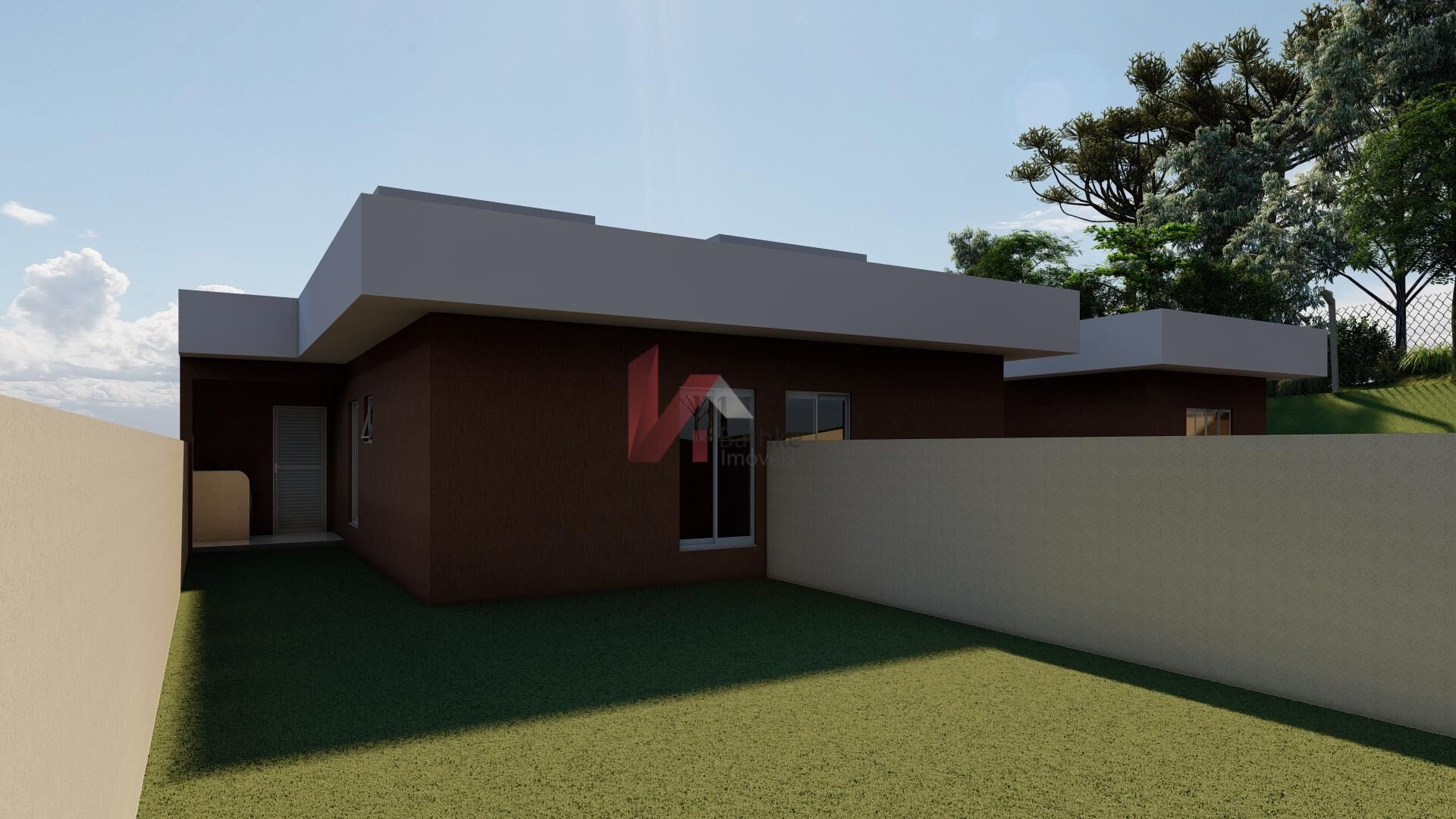 Casa térrea nova, com projeto arquitetônico aprovado, localizada na Rua Dico Stanski, bairro Moradias Bom Jesus, em Balsa Nova/PR.